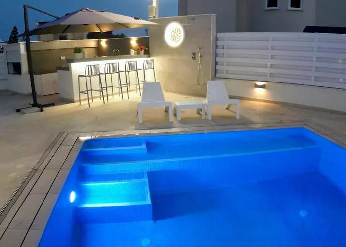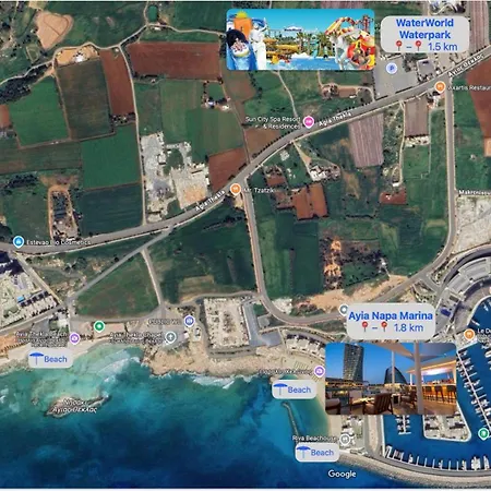 Situé dans le voisinage de "Ayia Thekla" à Ayía Nápa, à 5 minutes à pied de Sun City Spa Resort & Residences, Celestial Villa Ayía Nápa offre une vue sur la piscine. Villa offre des possibilités d'activités sportives, telles qu'un ping-pong et un jeu de fléchettes dans les environs, à à moins de 3 km de la Plage de Nissi.